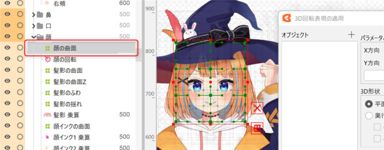 그리기 오브젝트(아트메쉬, 아트패스) 및 디포머(워프디포머, 회전 디포머)에 대해 3D 공간에서의 변형을 추정한 입체적인 형상을 생성합니다.