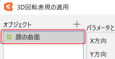 오브젝트를 목록에 등록하면 설정이 만들어지고 3D 회전 표현 적용을 사용할 수 있게 됩니다.