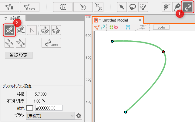 클릭하면 컨트롤 포인트와 그 사이를 연결하는 선이 새로 만들어집니다.