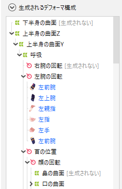 생성하지 않는 디포머 이름의 끝에는 [생성되지 않음]이 표시됩니다.