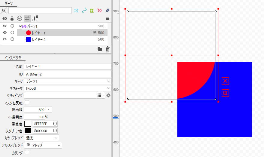 또한 오프스크린 렌더링이 활성화되어 있는 파츠 내에서는 블렌드 모드를 설정한 오브젝트보다 그리기 순서가 낮은 모든 오브젝트에 영향이 있습니다.