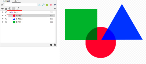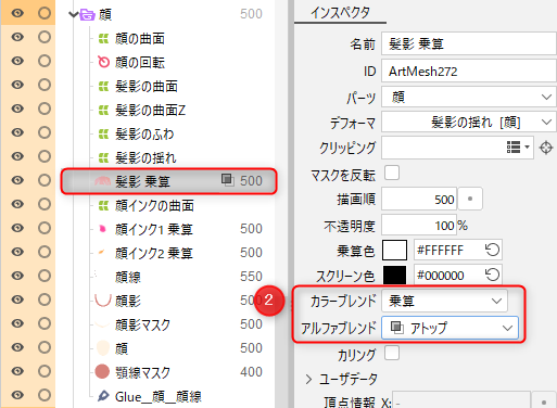 - 파츠 내에서 블렌드 모드를 설정한 오브젝트보다 그리기 순서가 낮은 오브젝트(③)에 대해 합성됩니다.