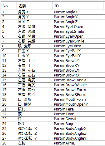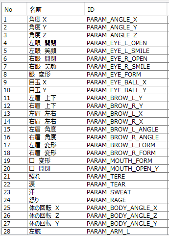 | Cubism 2.1 사양 ID | ⇔ | Cubism 3 이상 사양 ID | |