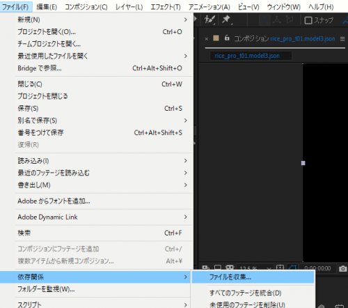 After Effects에서 [파일 수집]을 실행하면 프로젝트의 소재를 복사하여 새 폴더로 정리할 수 있습니다.