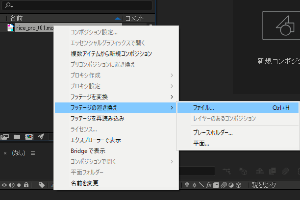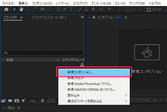 (프로젝트 패널 → 오른쪽 클릭 → 새 컴포지션 생성)