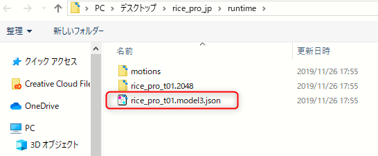 기존 프로젝트에서 「.model3.json」 파일을 드래그 앤 드롭하여 추가하고 「.model3.json.cae」로 변환한 후 새 프로젝트나 다른 프로젝트에서 「.model3.json」을 드래그 앤 드롭하면 정상적으로 「.model3.json.cae」로 변환되지 않는 경우가 있습니다.
