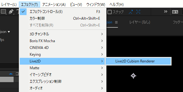 메뉴의 효과 → Live2D → Live2D Cubism Renderer