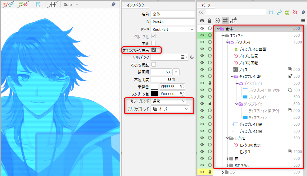 오프스크린 렌더링을 설정한 파츠의 자식인 아트 메쉬의 크기는 성능에 영향을 주지 않습니다.