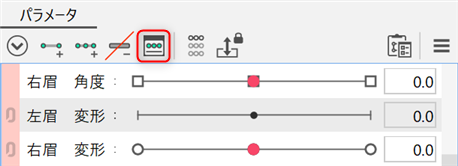 여기에서는 「왼쪽 눈썹 변형」 파라미터를 선택합니다.