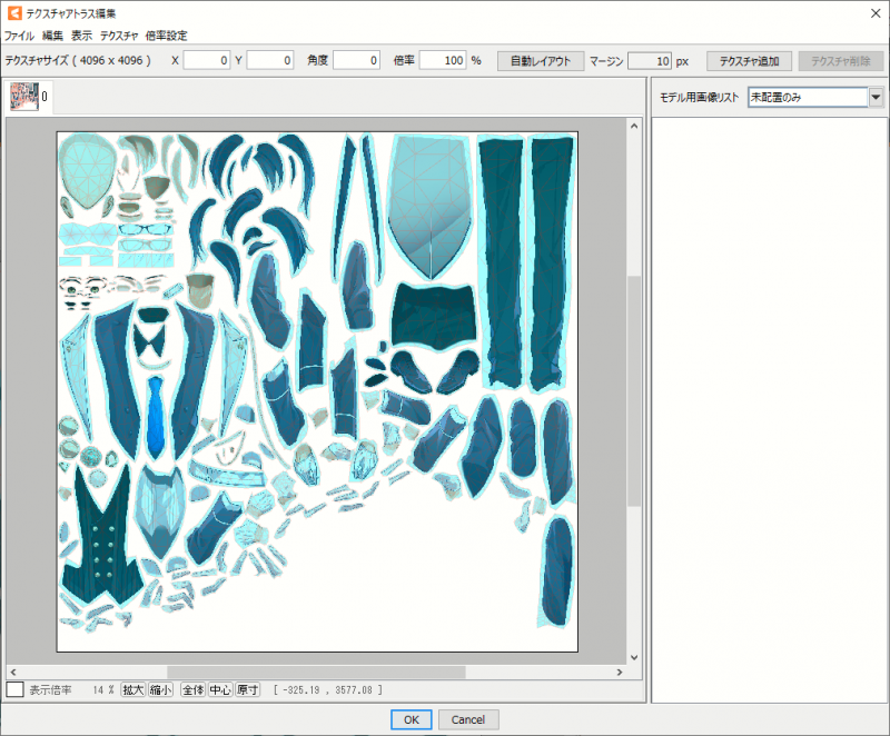 MOC3 파일을 내보낼 때는 먼저 텍스쳐 아틀라스 편집을 수행합니다.