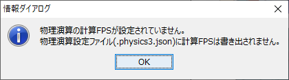모델 파일에 FPS 정보가 설정되어 있지 않으면 정보 대화 상자가 표시되고 FPS 정보는 내보내지지 않습니다.