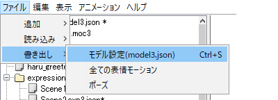 메뉴에서 [파일] → [내보내기] → [모델 설정(model3.json)]을 클릭합니다.