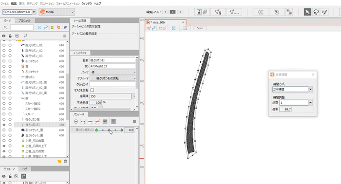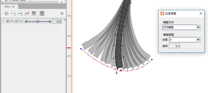 ※확장 보간을 사용하는 경우 파라미터의 키는 3점 이상 찍혀 있을 필요가 있습니다.