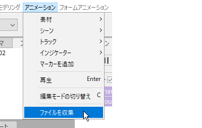 메뉴에서 [애니메이션] → [파일 수집]을 선택하고 저장 폴더를 지정하여 저장합니다.