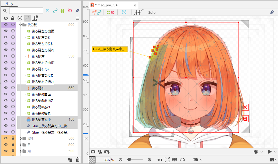 하나의 아트메쉬에 여러 개의 글루가 설정된 경우 여러 개의 「Glue」 태그가 표시됩니다.