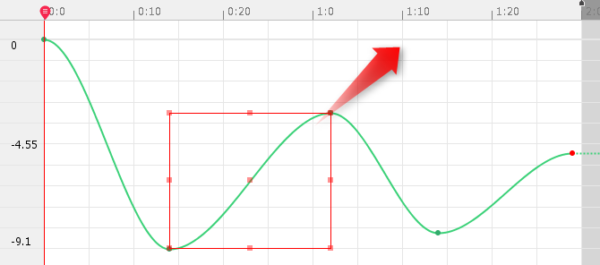 타임 라인의 아무것도 없는 곳에서 드래그를 시작하면 해당 범위에 포함된 키 프레임을 선택할 수 있습니다.