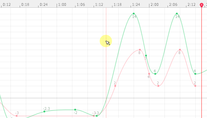 [Ctrl]+[Shift]를 누른 상태에서 [왼쪽 클릭]하면 커브에 키를 삽입할 수 있습니다.