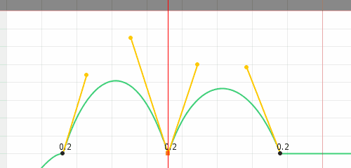 키를 선택하고 [베지어] 버튼을 클릭하면 키에 노란색 [베지어 핸들]이 표시됩니다.