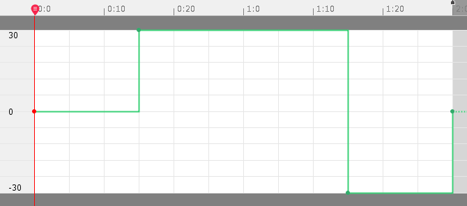 적용한 키 사이는 이전 키 프레임의 수치에 맞춘 수평 직선으로 연결됩니다.