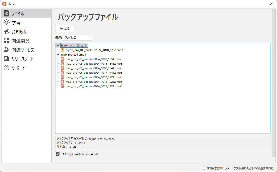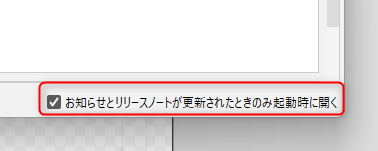 [홈] 대화 상자 오른쪽 하단의 [공지 사항 및 출시 노트가 업데이트된 경우에만 시작 시 열림]을 선택하면 대화 상자의 표시를 제한할 수 있습니다.