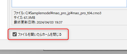 [파일] 카테고리 하단에 있는 [파일을 열면 홈 닫기]에 체크하면 파일을 열거나 새로 만들 때 홈을 자동으로 닫을 수 있습니다.