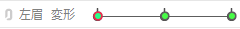 왼쪽 눈썹의 그리기 오브젝트를 선택하고 「왼쪽 눈썹 변형」 파라미터에서 「-1」, 「0」, 「1」로 키를 설정합니다.