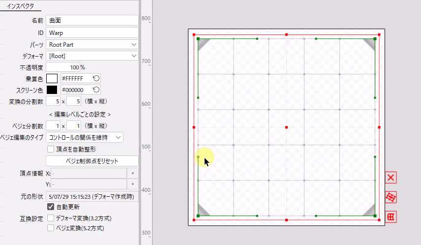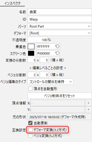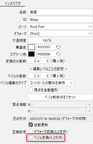 Cubism 5.2 이전의 방식으로 변형하고 싶은 경우에는 [베지어 변환(5.2 방식)]에 체크하십시오.