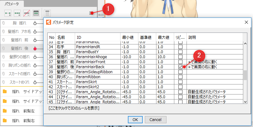 눈 깜빡임·립싱크를 설정한 파라미터는 반복을 설정할 수 없는 사양으로 되어 있습니다.