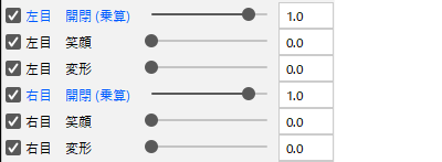 웃는 눈, 가늘게 뜬 눈, 크게 뜬 눈 등 눈의 개폐가 디폴트 이외(기본 1.0 이외)의 수치로 되어 있는 표정을 설정하는 경우