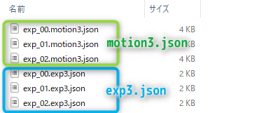 그러면 표정용으로 작성한 motion3.json을 exp3.json로 내보냅니다.