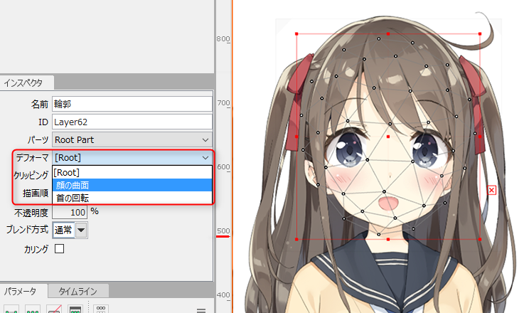 - [인스펙터] 팔레트에서 [디포머]를 클릭