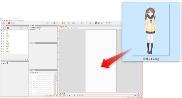 [파츠 팔레트]의 [밑그림] 파츠 안에 불투명도가 25%인 상태로 밑그림 이미지가 배치됩니다.