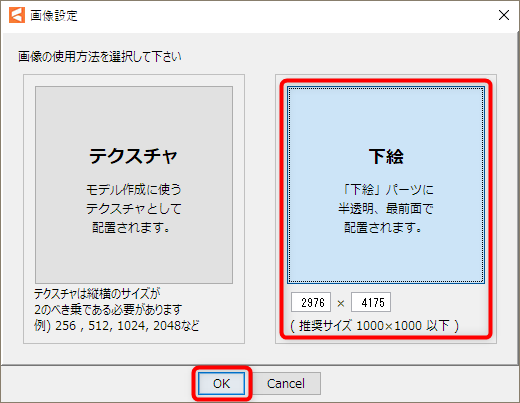 [밑그림]을 클릭하여 크기를 설정한 다음 [OK] 버튼을 클릭합니다.