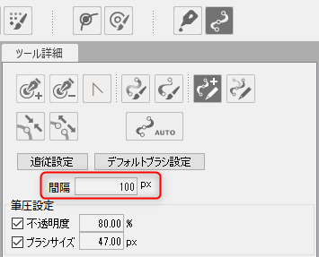그릴 때 작성되는 아트패스 정점의 「간격」 설정입니다.