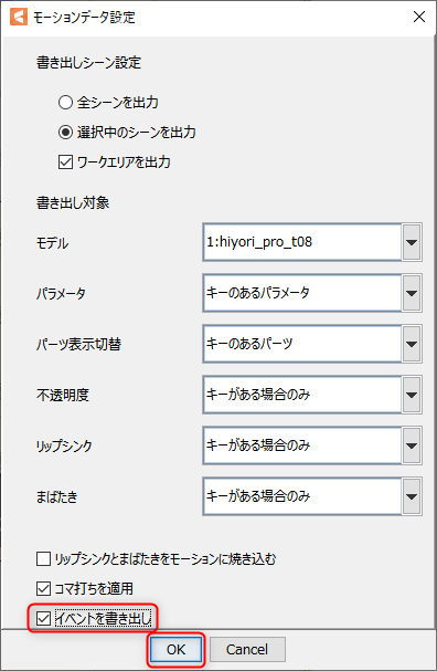 타임라인에 설정한 이벤트는 모션 데이터(.motion3.json) 안으로 내보내집니다.