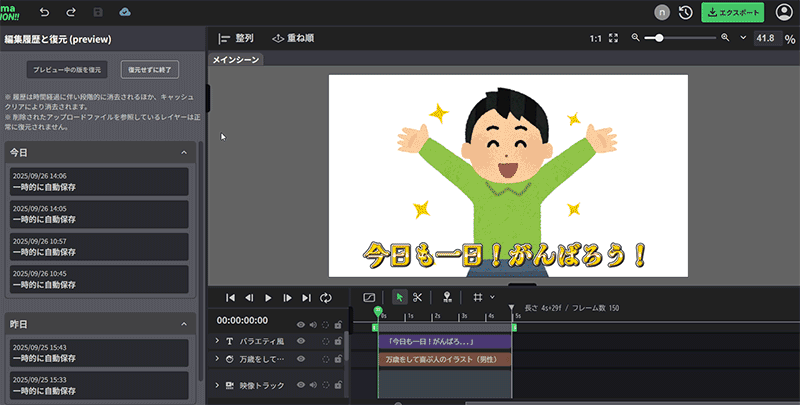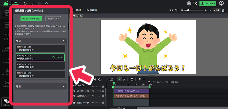 プロジェクトの編集中に、過去の状態に戻したい場面に便利な「編集履歴と復元」機能をご紹介します。