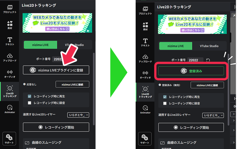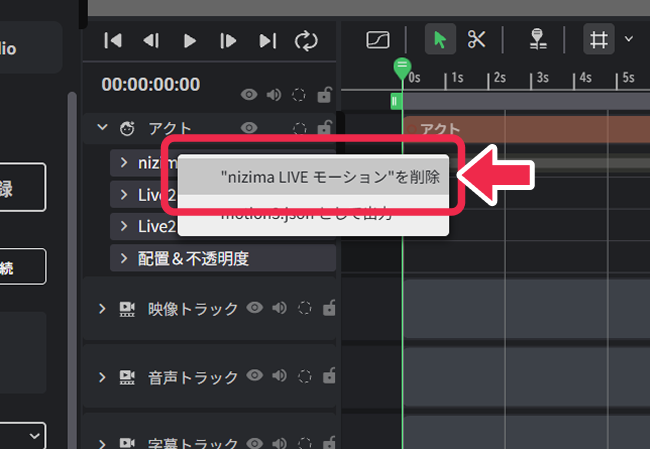 削除後、Live2Dトラッキングを使用して動きを録り直すことも可能です。