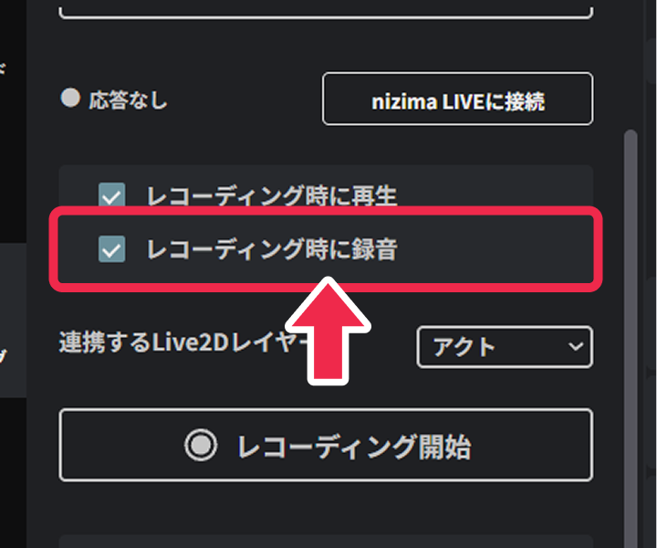 ※ 「レコーディング時に録音」を有効にすると、マイク音声も同時に録音されます。