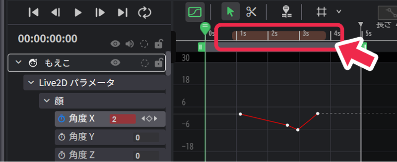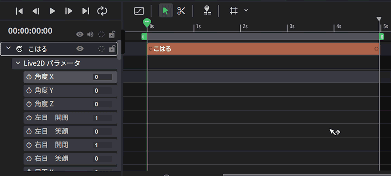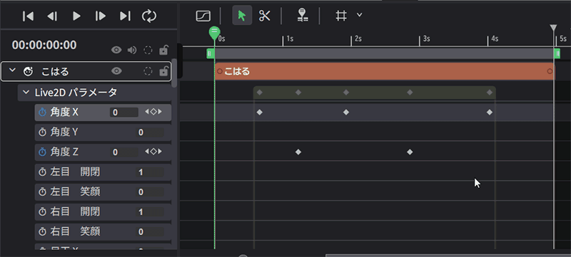 この挙動はLive2D Cubism Editorと同様の操作感となっており、必要に応じてタイムラインツールバーにある「再生ヘッドを固定」ボタンでオン/オフを切り替えることができます。