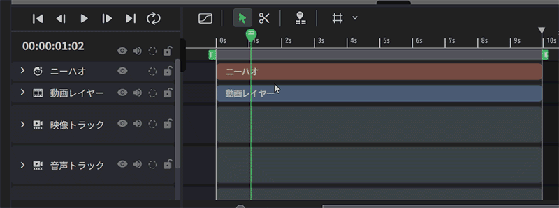 タイムラインの上部に表示される操作バーで、再生やループ再生、カット、再生ヘッドの固定など、基本操作を行うための機能がまとめられています。