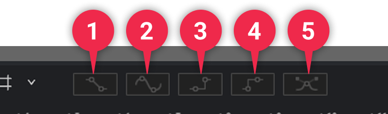| ❷ | オートスムーズ | 「オートスムーズ」はデフォルトのキーフレーム補間法になります。 適用するとキーの間はなめらかなカーブでつながります。 アニメーションはゆっくり動き始め、次のキーフレームへ向かって減速する動きになります。 ※Live2D Cubismの「オートスムーズ」と同様の曲線となります。 |