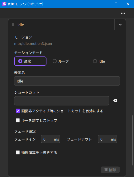 - When you release the key set as a shortcut, the expression/motion will be reset.
