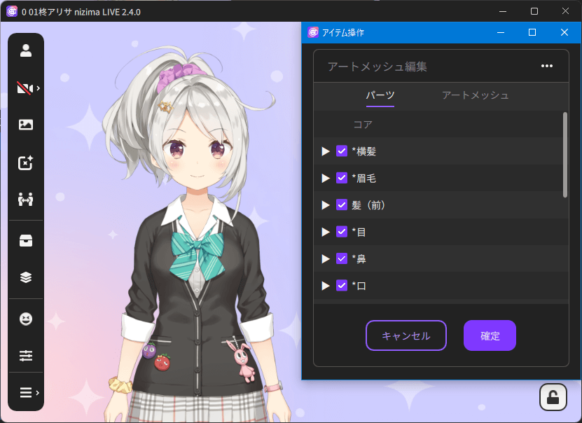 | Parameter settings (Live2D items only) | Parameter settings for each item. |