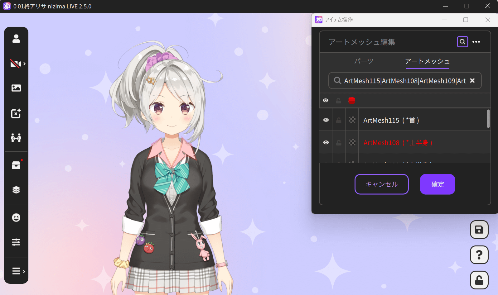 Unauthorized modification may infringe on rights. Be sure to obtain permission from the model’s rights holders before editing the ArtMeshes, such as showing or hiding them.