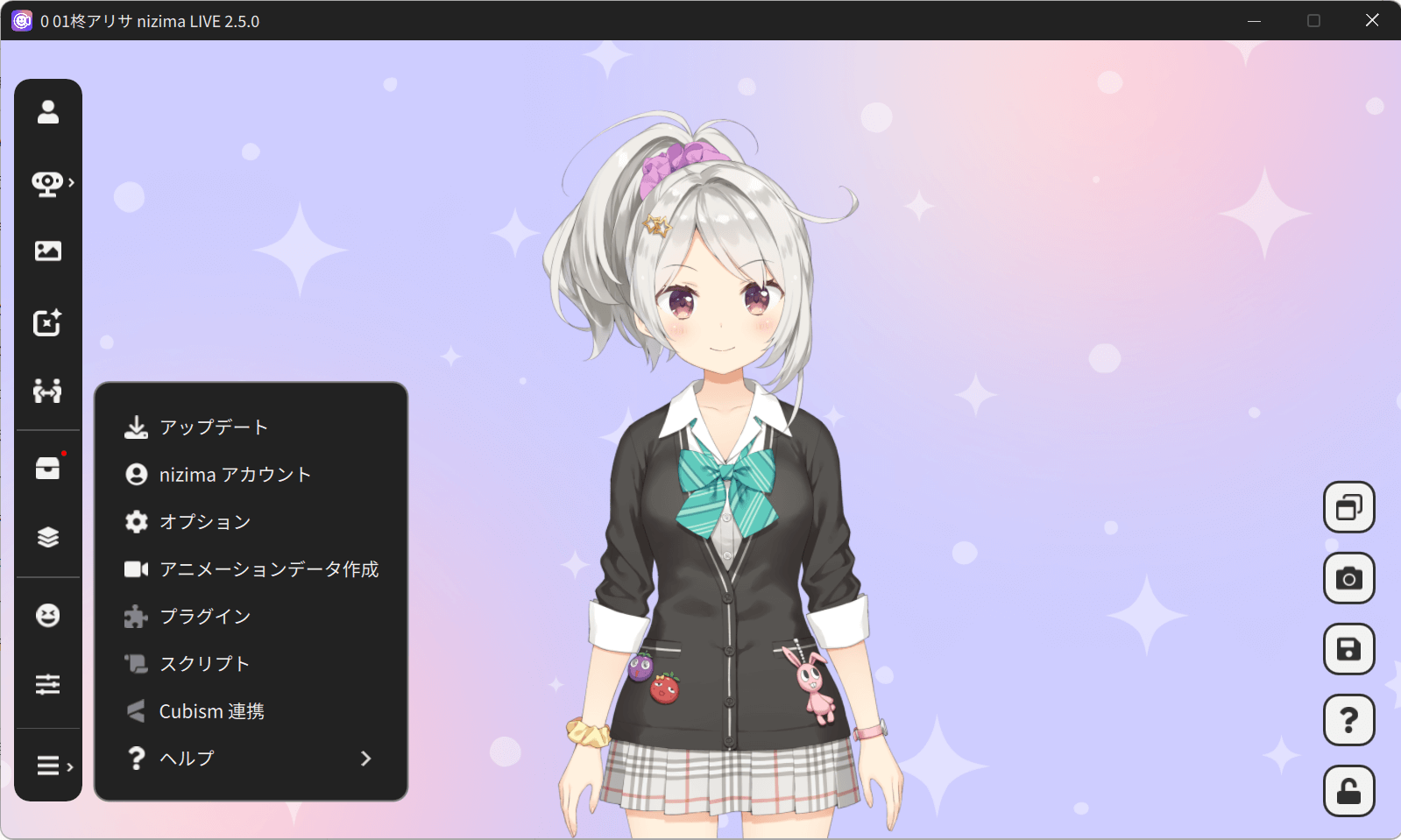 | Automatic model loading upon export | When the MOC3 file is exported by Cubism Editor, it is automatically registered in nizima LIVE and the model is displayed on the screen. |
