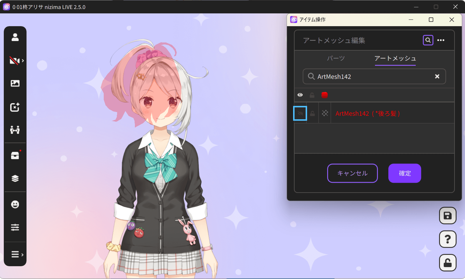 Unauthorized modification may infringe on rights. Be sure to obtain permission from the model’s rights holders before editing the ArtMeshes, such as showing or hiding them.