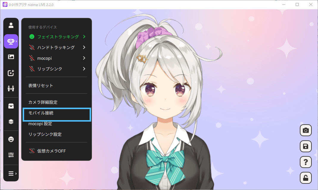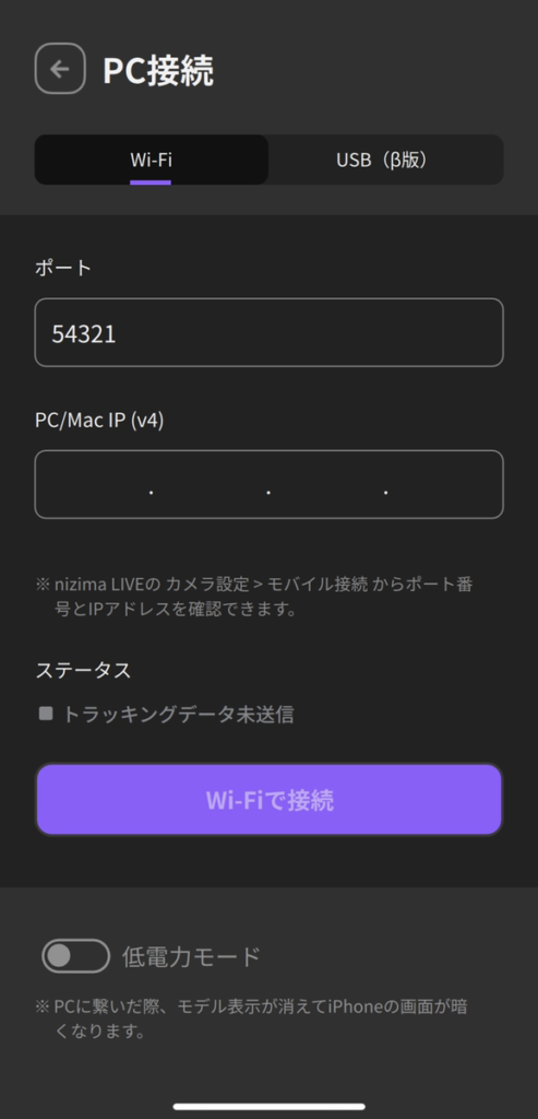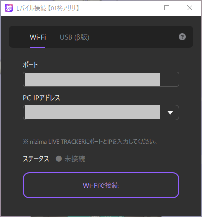 - 5. Leave the above window displayed in nizima LIVE (PC) and open nizima LIVE TRACKER on the iPhone.