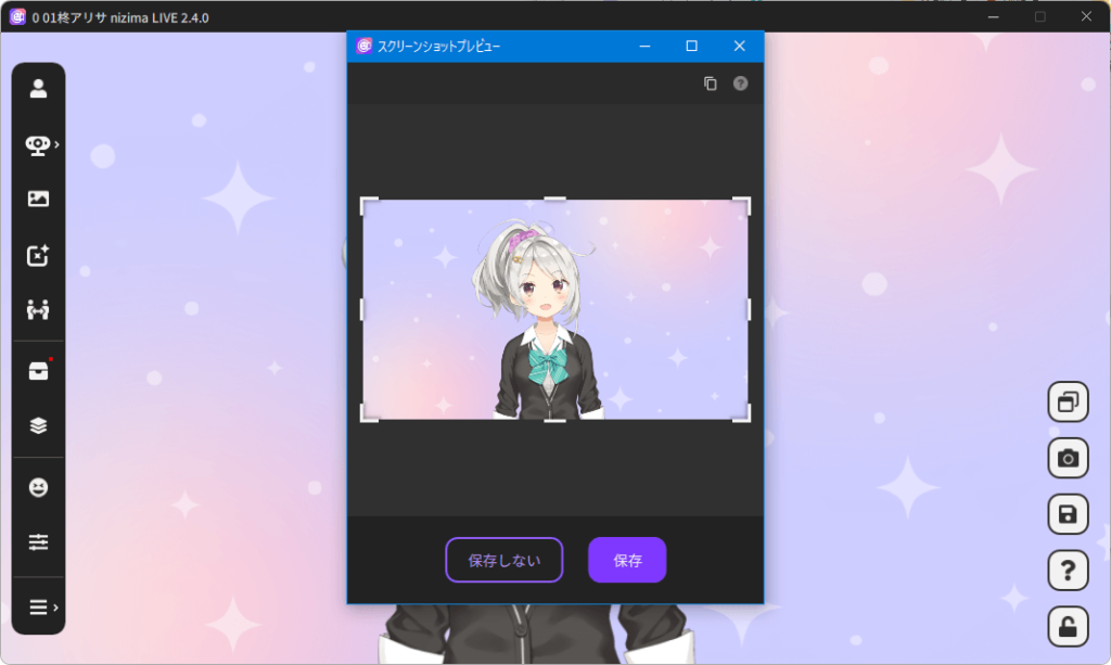 - 2. A screenshot is taken and an image preview is displayed. If necessary, crop the image by dragging the outer frames. If the image is acceptable, click “Save.”