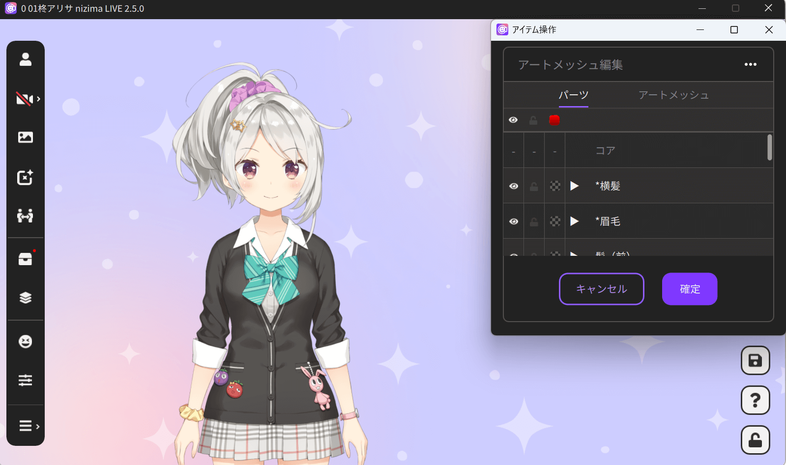 | パラメータ設定※Live2Dアイテムのみ | アイテムごとにパラメータ設定をすることができます。 |