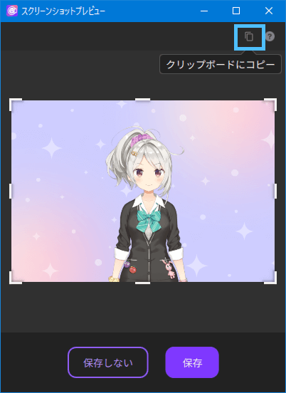 - 2. スクリーンショットが撮影され、画像プレビューが表示されます。必要に応じて、「」の外枠をドラッグして画像をトリミングします。問題なければ「保存」をクリックします。